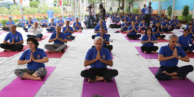 The 3rd International Yoga Day was celebrated at Bharat Dynamics Limited (BDL), a PSU under the Ministry of Defence, Government of India in Hyderabad today. A lecture followed by a demonstration of ‘asanaas’ were presented by Shri Raja Rao Adsumilli, Yoga guru and in-charge Datta Kriya Yoga International (AP & TS). Shri S. Piramanayagam, Director (Finance) and Dr. N.K. Raju, Executive Director (P&A) along with the employees of the Company participated in the celebrations.